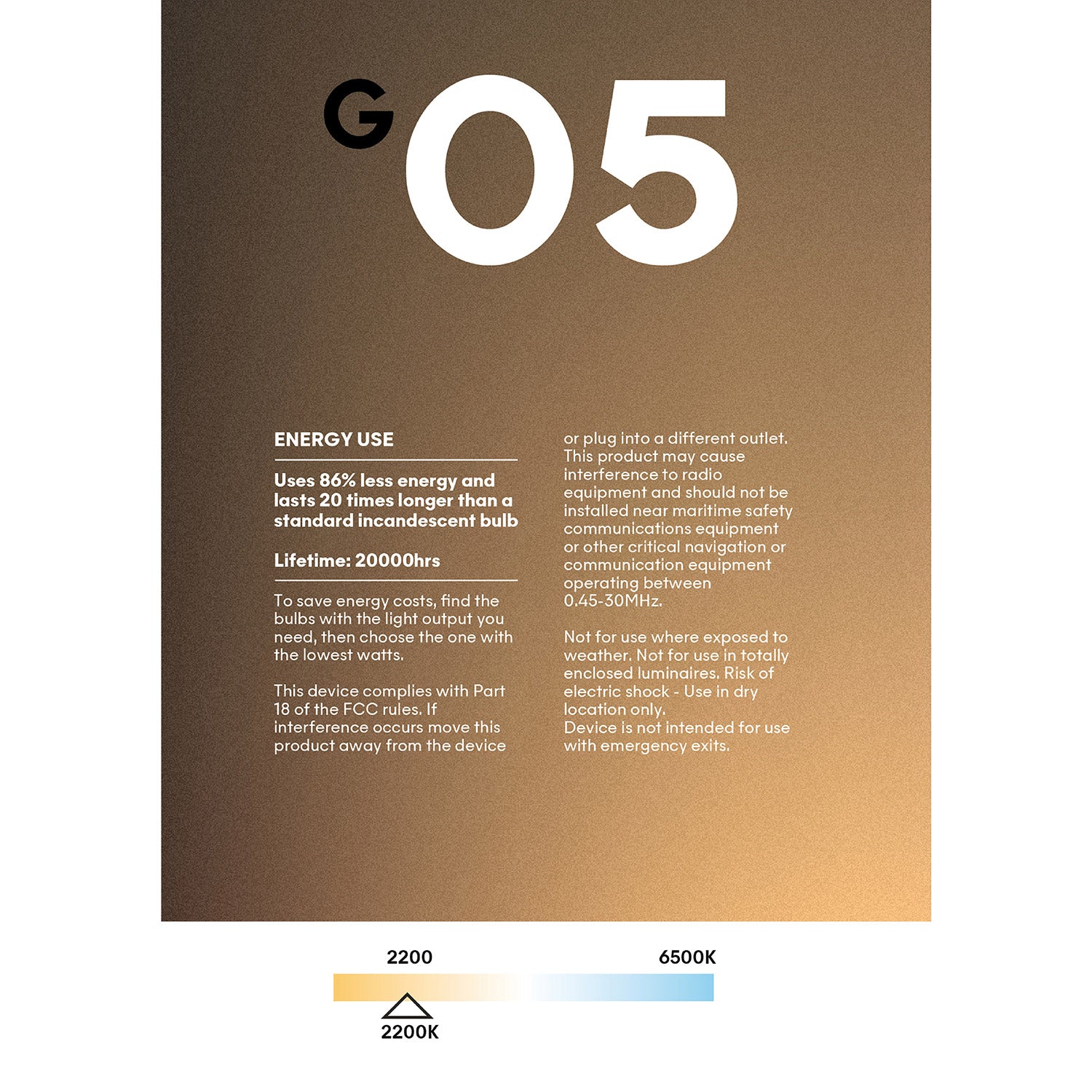 The clear glass of the G05 ensures excellent diffusion, delivering a warm, even, dimmable glow suited to any occasion.